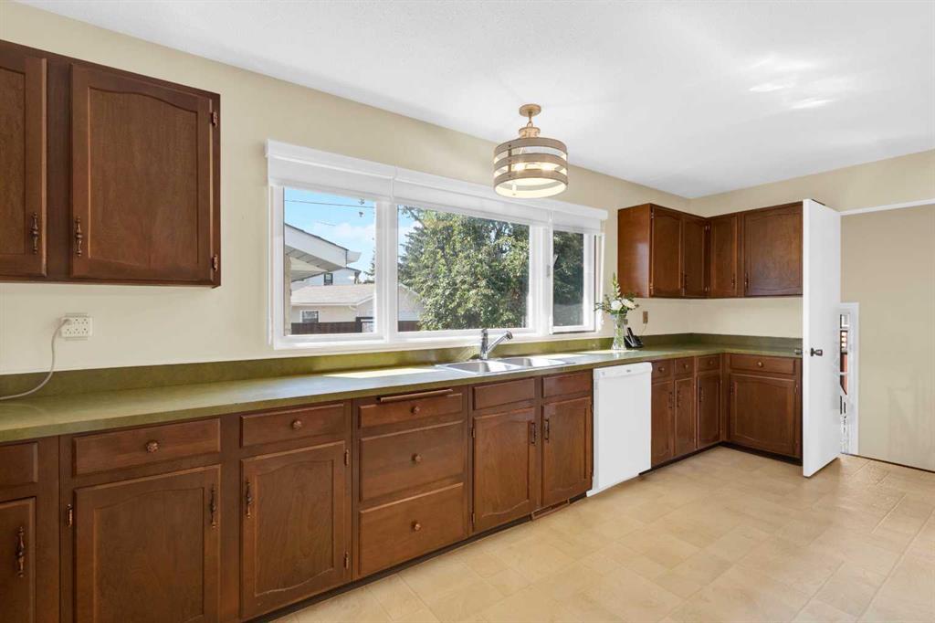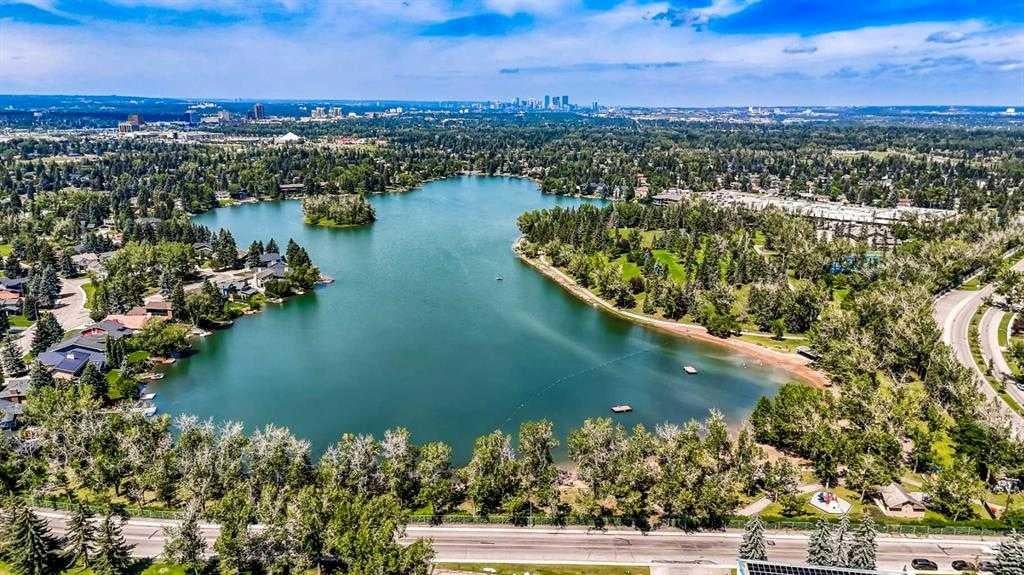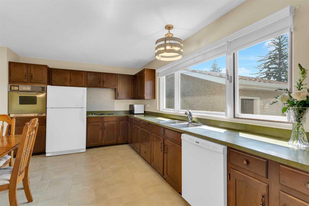A picturesque locale will get your attention, and the comfortable charm of this Lake Bonavista home will capture your heart. A treed road with views of the green space across the street is a rare and coveted setting, and pride of ownership is evident in the immaculate front yard as you walk up to the door. Inside features a rare four-bedroom main floor, and has been well maintained and thoughtfully upgraded over the years. A sunny living room with original hardwood showcases quality and style, and entertaining is easy with an open layout into the dining room. The kitchen has a retro aesthetic that includes the original solid wood cabinetry and countertops and well as a vintage cooktop and wall oven; all in great condition. Enjoy the vibe while you cook even as you plan your dream remodel. Updated lighting was carefully selected to enhance the existing character and complement any style changes you make. Down the hall, a spacious primary bedroom takes in peaceful views of the park through floor-to-ceiling windows, and is complete with a two-piece ensuite bathroom and a rare walk-in closet. Three more bedrooms form an ideal layout for a larger family, or for dedicated office space, and the main bathroom echoes the same genre and beautifully cared for feel of the rest of the home. In the unfinished basement, your ideas are welcome. Full-height ceilings and direct access to the back door might lend inspiration to your designs. You will also notice the utility area has a newer furnace and brand-new air conditioning, as well as a newer washer and dryer. Outside, the southwest backyard is landscaped and tidy. A gorgeous tree gives shade to the deck and lawn. The roof was replaced just two years ago, and the oversized double-detached garage provides off-street parking and hobby space. The paved laneway is a perk, with entrances at both ends so you could easily pull the RV through to load up for camping. This home offers amazing neighbours as well as a short walk to the lake or to The Promenade. With a park just steps from your front door and schools in walking distance, this neighbourhood is excellent for families. Southcentre Mall is nearby, and proximity to Macleod Trail also puts a host of restaurants, services, and other amenities in easy reach. Plus, commuters can be downtown in about 20 minutes. Deerfoot Trail and Anderson Road also make it easy to visit friends in other areas or to skip the city altogether and head out of town. Call today for a private showing.