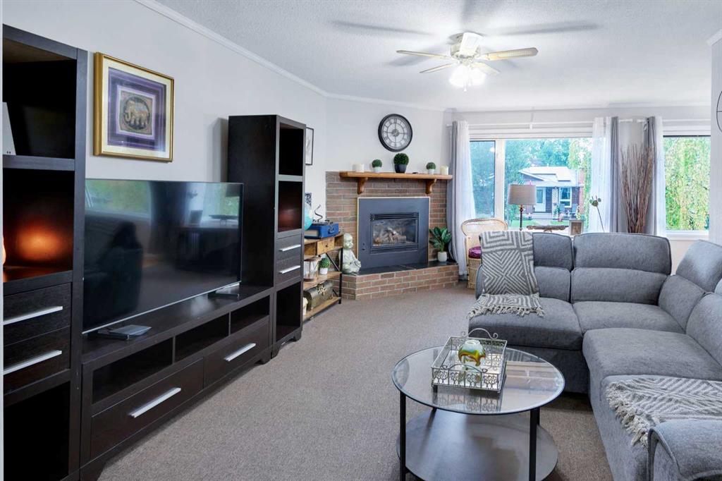 This charming bungalow offers over 2,335 sq. ft. of finished space on a massive south-facing lot backing directly onto green space — a rare find. Meticulously maintained, it’s the perfect opportunity to keep the character details you love and renovate to your taste. Curb appeal sets the tone before stepping inside to a welcoming mudroom with access to the single-attached garage. Original parquet floors add charm, while a brick surround gas fireplace anchors the spacious living room, seamlessly connected to the dining area. Large windows flood the home with natural light and overlook the mature, treed front yard. The kitchen offers classic cottage vibes with a sunny breakfast nook and a thoughtful mix of updates — including a new stove, oven, and dishwasher. The primary suite features a walk-in closet and full ensuite, while two additional bedrooms and a generous main bathroom complete the main level. One bedroom even has patio doors to the deck, making a fantastic home office option. Downstairs, the finished basement is ideal for entertaining with a wet bar, rec space, and room for a theatre, gym, or games area. A den/office, full bathroom, hobby room, and laundry/utility room add versatility, along with a newly upgraded electrical panel. Outside is a true backyard oasis. The 6,100+ sq. ft. lot boasts mature trees, lush lawn, and a huge deck and patio for summer living. A private gate opens to Babbling Brook Park and the soccer field, offering endless recreation. Deer often wander by, adding a touch of nature to your daily life. Walk to schools, shops, Bow Tie Pizza, and Fish Creek Park. Golf, the LRT, Macleod Trail, and Anderson Road are minutes away for easy commuting and city access. This property blends rare lot size, unbeatable location, and endless potential. See it today and imagine the possibilities.
