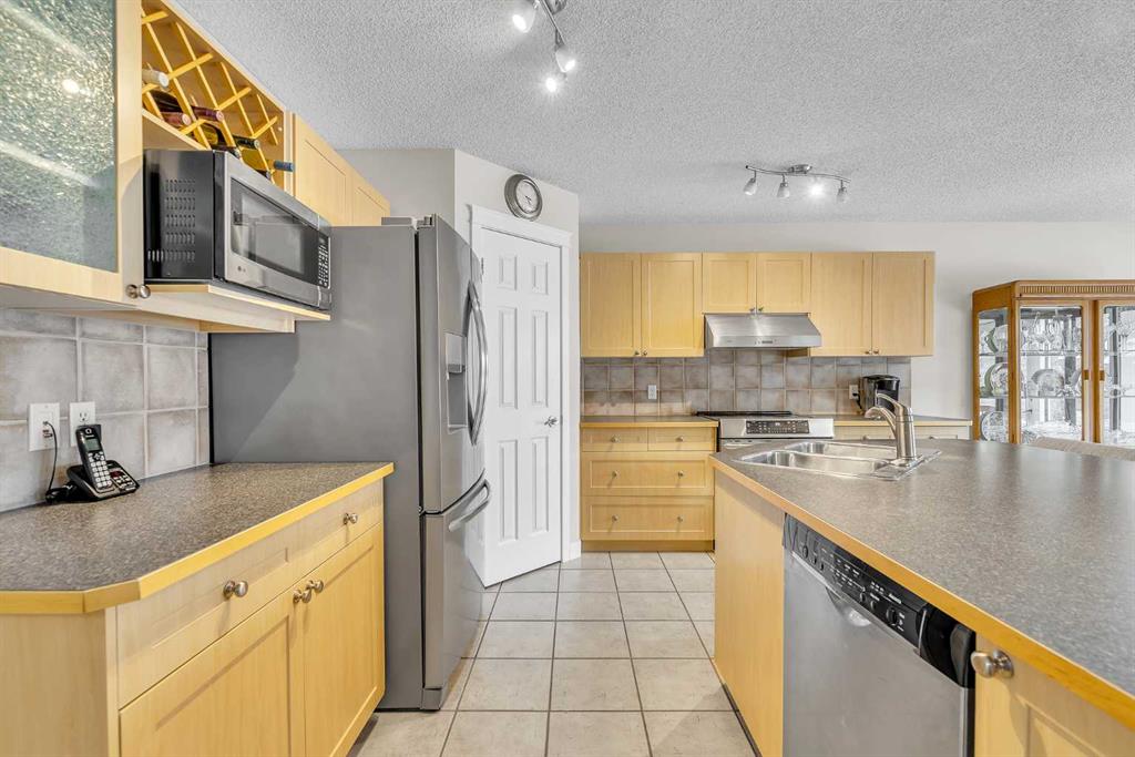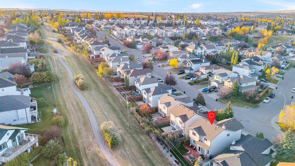 Phenomenally located and set at the end of a whisper quiet street, this Panorama Hills home is stunning inside and out. A neatly landscaped front yard invites you inside, where soaring ceilings and upper storey windows in the entry set a tone of airy natural light that continues throughout. The main living space is bright and open, with windows along the back wall showcasing the south-facing backyard and the green space beyond. Luxury vinyl plank flooring in the living room pairs with the gas fireplace for a sense of cozy warmth. Light maple cabinetry in the kitchen provides a homey elegance, and the eat-up island is sure to be the hub of your gatherings. Newly upgraded appliances include an induction range, and a full pantry makes staying stocked up on snacks easy. Full height windows and a glass pane patio door merge your indoor and outdoor spaces, allowing your summer get-togethers to flow from snacks in the sunny dining area to alfresco eating. New paint throughout enhances the fresh aesthetic, and all the windows are new triple pane. A powder room on this level adds convenience, and the entryway from the double-attached garage includes a washer and dryer and added storage cupboards. Upstairs, the bonus room has its own wing along the front of the house, ideal for families with different bedtimes. New carpet on this level feels luxurious, as do the custom Zebra blinds throughout the home. The primary bedroom is spacious and serene, overlooking the pathway behind the house. This self-contained retreat is complete with blackout blinds, a walk-in closet, and a full ensuite bathroom. Two more bedrooms are generously sized, and the main bathroom design is timeless; perfect for a busy household. Downstairs, the finished basement is the ultimate chill zone. Architectural ceilings and recessed lighting add unique interest, and shiplap wainscoting elevates the style. A dry bar makes this space the perfect game day hangout. Another bedroom and remodeled bathroom are fantastic for guests or a bigger family. Functional upgrades include a Kinetico water softener. Outside, a picturesque, professionally landscaped yard is sure to be your favourite spot. A huge, tiered deck offers lounging, grilling, and eating areas. Kids or pets will love playing in the lush lawn, and the retaining wall was done in a low maintenance style. Stone stairs give you direct access to the green belt and pathway that connects throughout the community to parks, playgrounds, and the local hiking area. This home is also only steps to the newly renovated community centre and the Country Hills shopping area, which holds a vast array of stores, restaurants, and services. Both public and Catholic schools and the transit terminal are nearby – convenient for families and commuters – and the Vivo Centre offers recreation facilities, activities, and a public library just up the street. If you leave the community, Deerfoot and Stoney Trails are close, connecting you to the rest of the city.