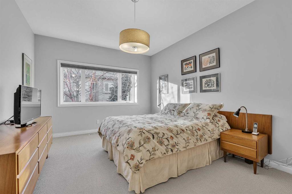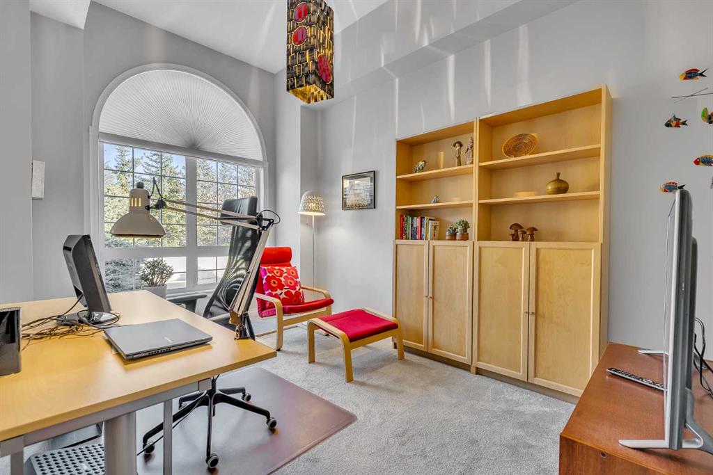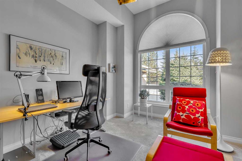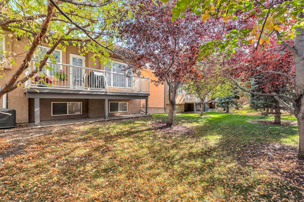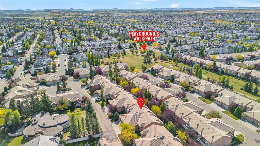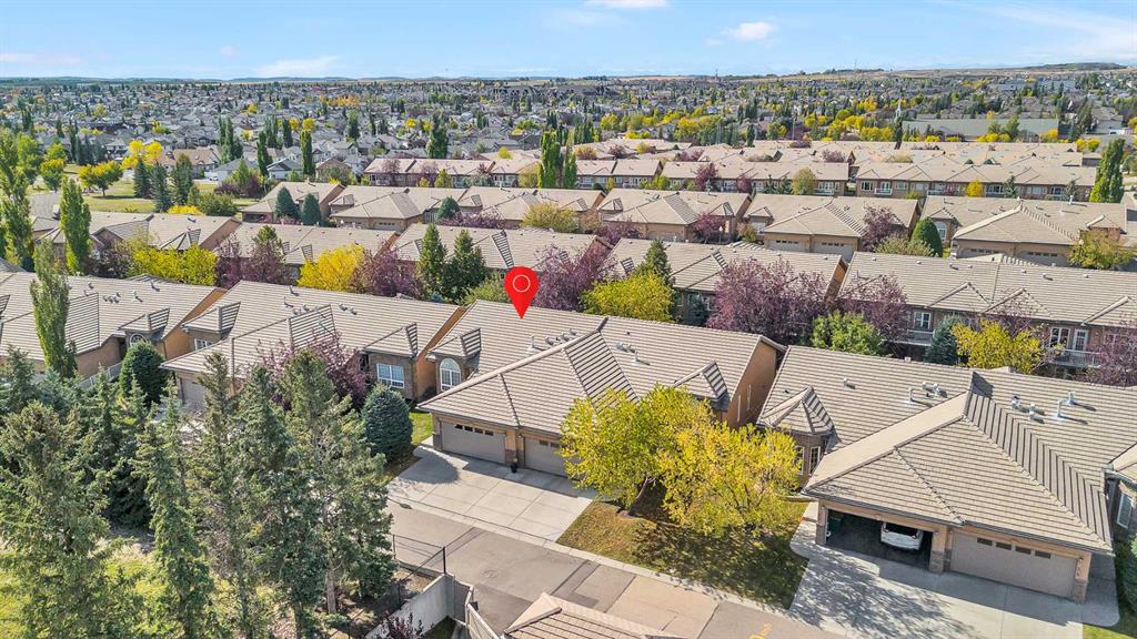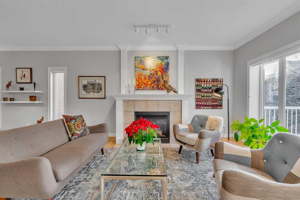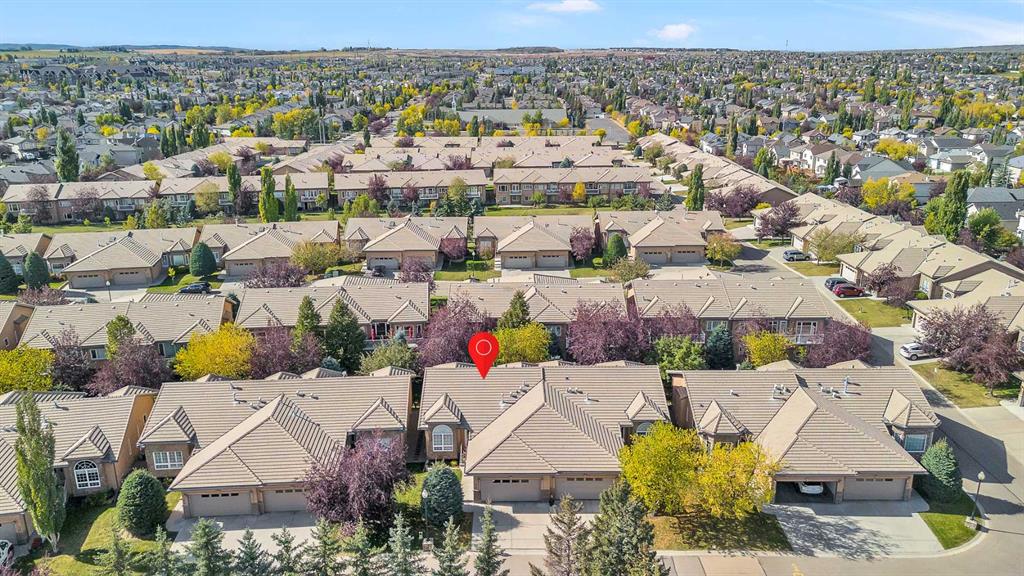 Natural light and timeless design, as well as one of the biggest floorplans in this complex, give this beautiful Shawnessy villa style and comfort in this sought-after adult (35+) estate area. Attractive landscaping frames the front porch, and inside, transom windows flood a spacious entryway with sunshine from the east. A front room makes a great home office, and features statement floor-to-ceiling windows that bring in the morning light for a perfectly illuminated workspace. The main living space begins with a sunny and open dining area. Clean lines and gorgeous hardwood balance warmth and elegance as you continue into the open living room. A gas fireplace is the focal point, inviting guests to cozy up for great conversation. In the kitchen, a monochrome palette creates an understated yet sleek aesthetic complete with white appliances. A full pantry is a desirable element, and counterspace is plentiful; sure to impress the chef of the household. A breakfast nook steps out to the balcony, with dappled shade from the treed courtyard – an ideal setting for winding down as you take in the sunset skies to the west. This level holds the primary bedroom, which is a peaceful private retreat. This secluded space includes a huge walk-in closet and an ensuite with a soaker tub and separate stand-up shower. A functional layout has the powder room and laundry just next to the entry from the double attached garage to finish this level. Downstairs, the finished basement provides tons of additional living space, with a large family room, another bedroom with a walk-in closet, and another full bathroom. The utility room also offers a massive storage area for all your seasonal items. This home has a central vac and air conditioning, as well as a new hot water tank. The complex itself is well laid out, with privacy and quiet as priorities. This home is very near the recycling and waste sheds and visitor parking, perks you and your guests will appreciate. This neighbourhood is popular for its green space, with pathways beginning only steps from your door and winding all the way to Fish Creek Park. Convenience is also a benefit; the Shawnessy shopping area is just minutes down the road, offering a plethora of stores, services, and amenities. The C-train is also nearby, giving commuters the option to hop on the LRT, or drive downtown via convenient access to Macleod Trail. Proximity to major routes like Stoney Trail put any area of the city in easy driving distance, and this community is also near Highway 22X, where you will find iconic Spruce Meadows, as well as an easy escape west into the mountains for your favourite outdoor activities like camping, hiking, mountain biking, and skiing. With 2195 sqft of developed space, this floorplan is a rare find, call today.