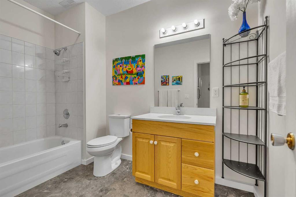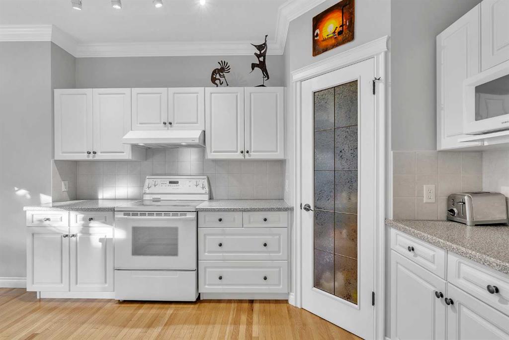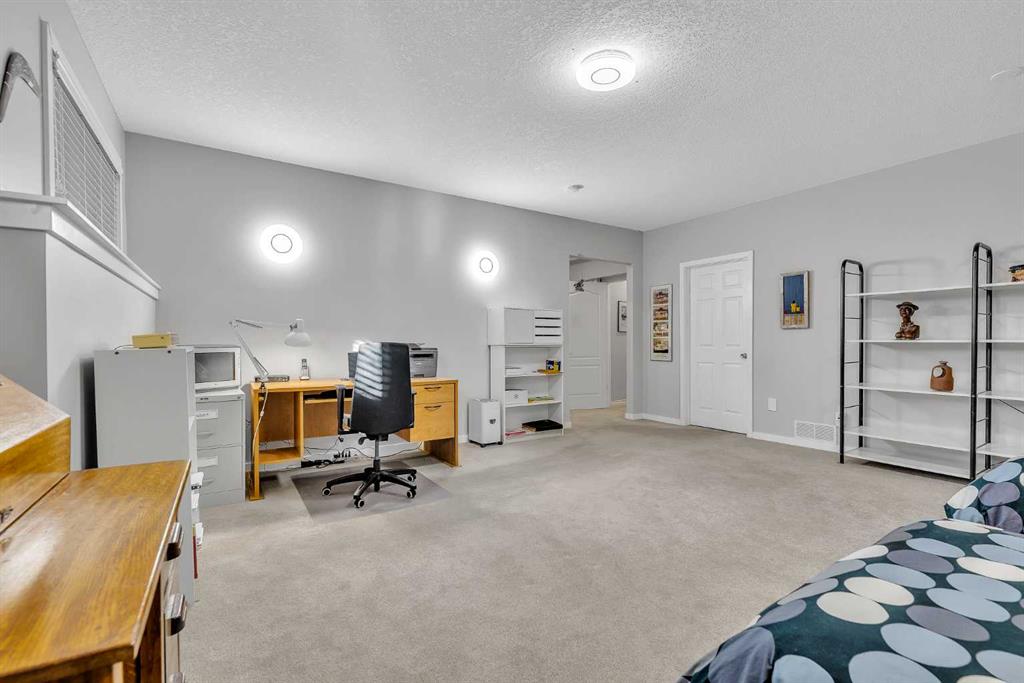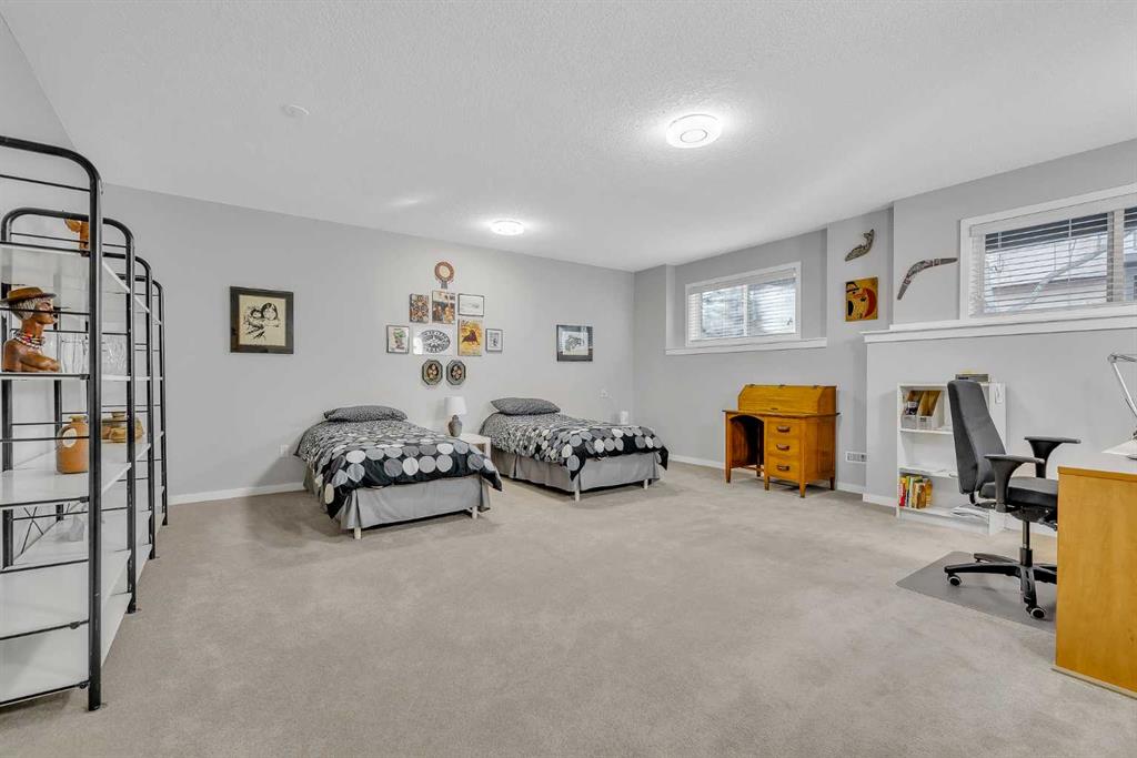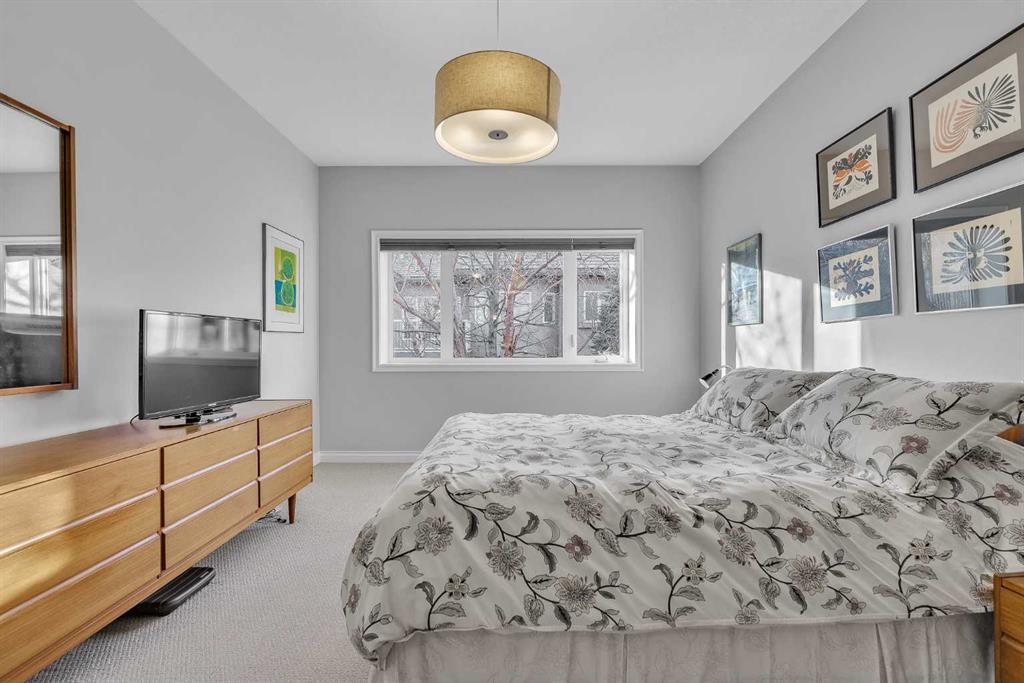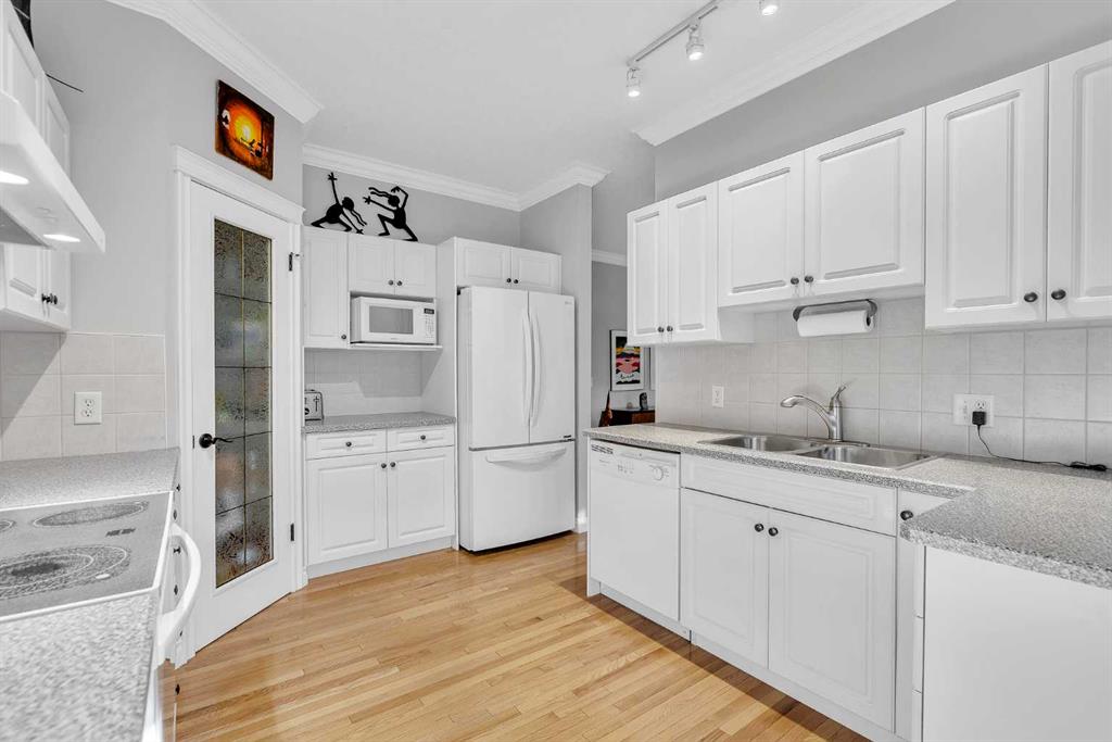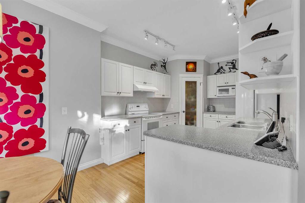 Natural light and timeless design, as well as one of the biggest floorplans in this complex, give this beautiful Shawnessy villa style and comfort in this sought-after adult (35+) estate area. Attractive landscaping frames the front porch, and inside, transom windows flood a spacious entryway with sunshine from the east. A front room makes a great home office, and features statement floor-to-ceiling windows that bring in the morning light for a perfectly illuminated workspace. The main living space begins with a sunny and open dining area. Clean lines and gorgeous hardwood balance warmth and elegance as you continue into the open living room. A gas fireplace is the focal point, inviting guests to cozy up for great conversation. In the kitchen, a monochrome palette creates an understated yet sleek aesthetic complete with white appliances. A full pantry is a desirable element, and counterspace is plentiful; sure to impress the chef of the household. A breakfast nook steps out to the balcony, with dappled shade from the treed courtyard – an ideal setting for winding down as you take in the sunset skies to the west. This level holds the primary bedroom, which is a peaceful private retreat. This secluded space includes a huge walk-in closet and an ensuite with a soaker tub and separate stand-up shower. A functional layout has the powder room and laundry just next to the entry from the double attached garage to finish this level. Downstairs, the finished basement provides tons of additional living space, with a large family room, another bedroom with a walk-in closet, and another full bathroom. The utility room also offers a massive storage area for all your seasonal items. This home has a central vac and air conditioning, as well as a new hot water tank. The complex itself is well laid out, with privacy and quiet as priorities. This home is very near the recycling and waste sheds and visitor parking, perks you and your guests will appreciate. This neighbourhood is popular for its green space, with pathways beginning only steps from your door and winding all the way to Fish Creek Park. Convenience is also a benefit; the Shawnessy shopping area is just minutes down the road, offering a plethora of stores, services, and amenities. The C-train is also nearby, giving commuters the option to hop on the LRT, or drive downtown via convenient access to Macleod Trail. Proximity to major routes like Stoney Trail put any area of the city in easy driving distance, and this community is also near Highway 22X, where you will find iconic Spruce Meadows, as well as an easy escape west into the mountains for your favourite outdoor activities like camping, hiking, mountain biking, and skiing. With 2195 sqft of developed space, this floorplan is a rare find, call today.